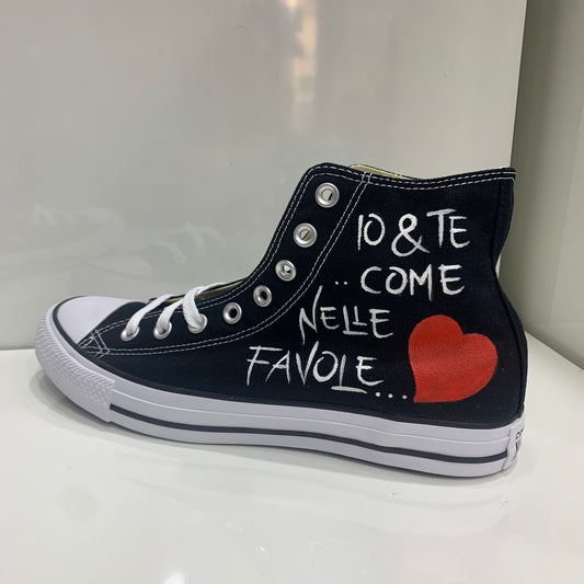 Converse All Star Nere Alte personalizzate Disegnate Vasco Rossi