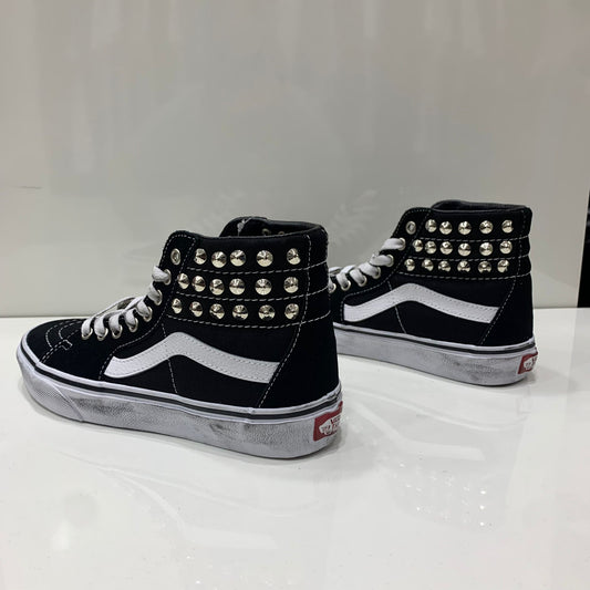 Vans Sk8 personalizzate con borchie argento effetto sporco Occhielli
