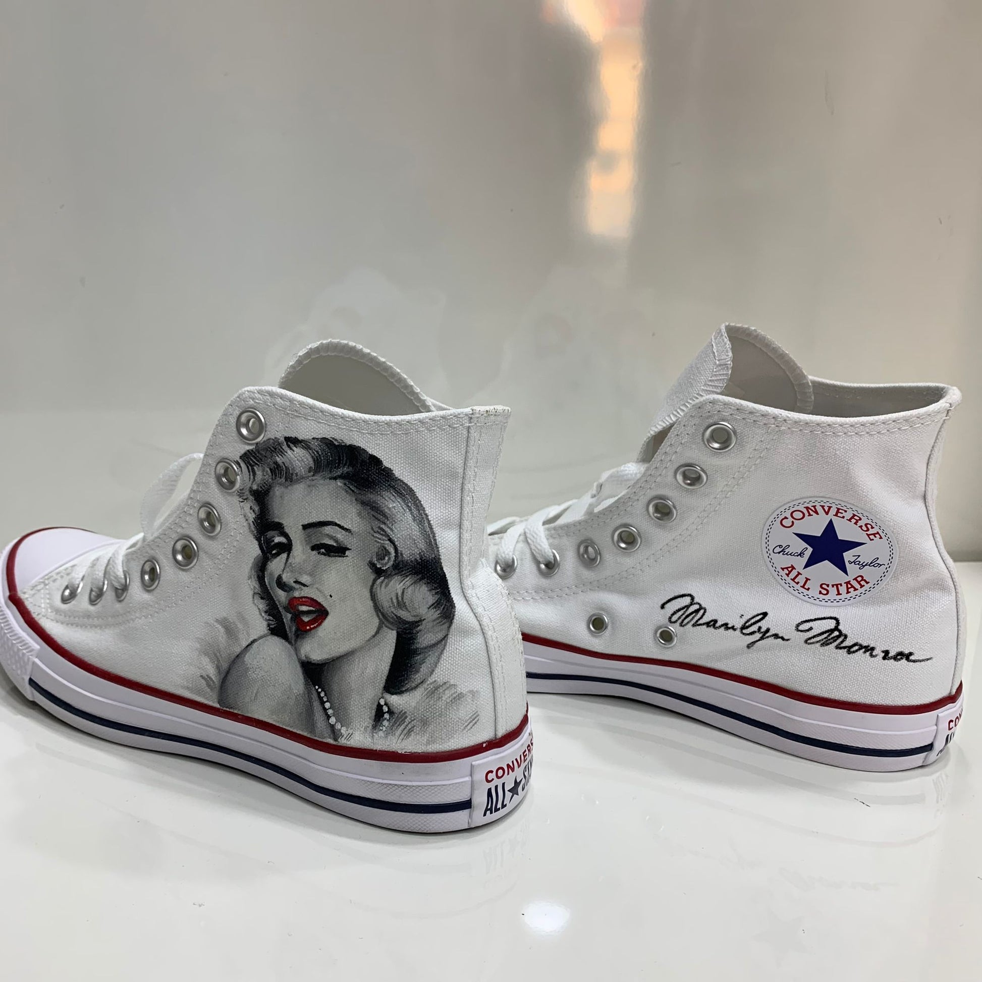 Converse All Star Bianche Alte personalizzate Disegnate Marilyn Monroe