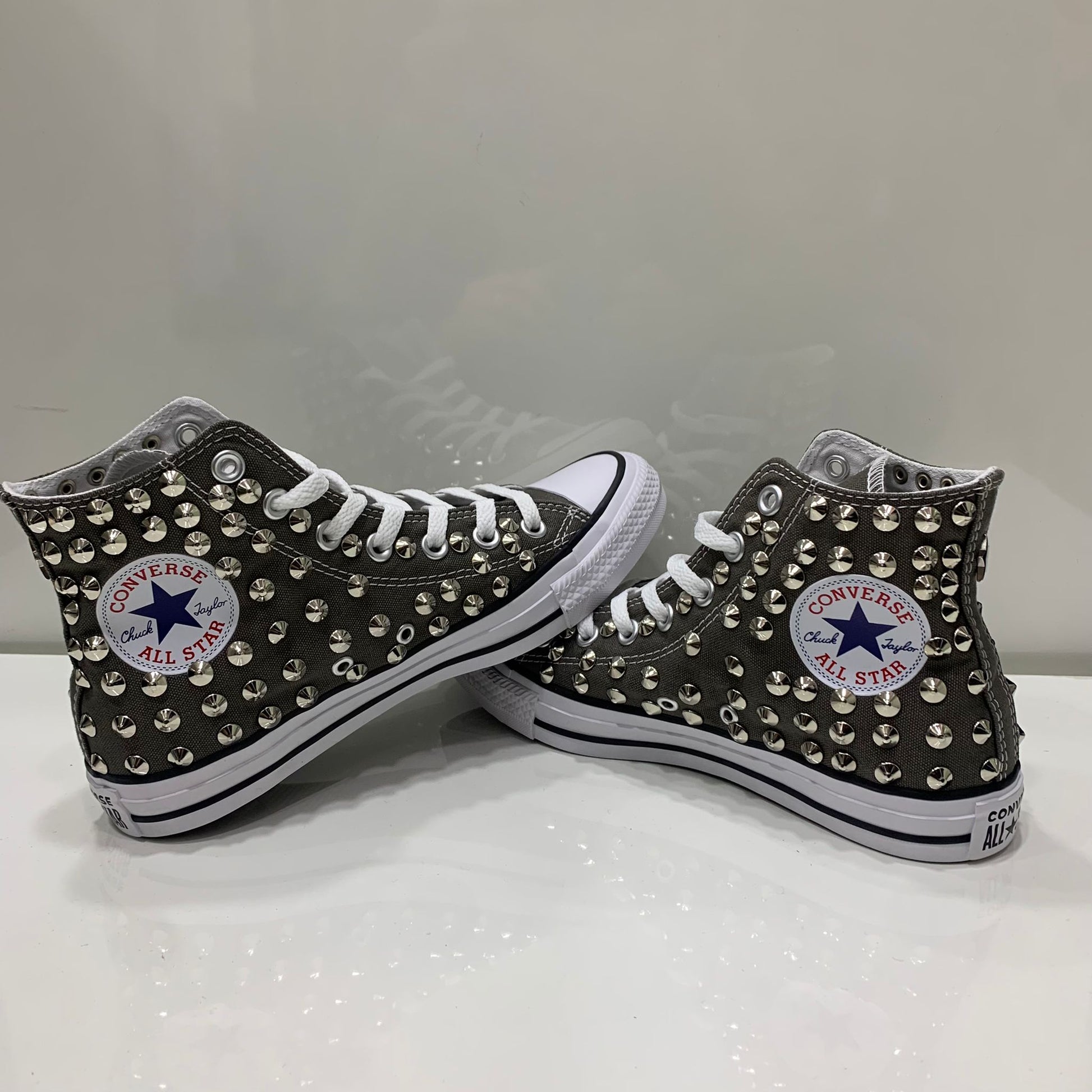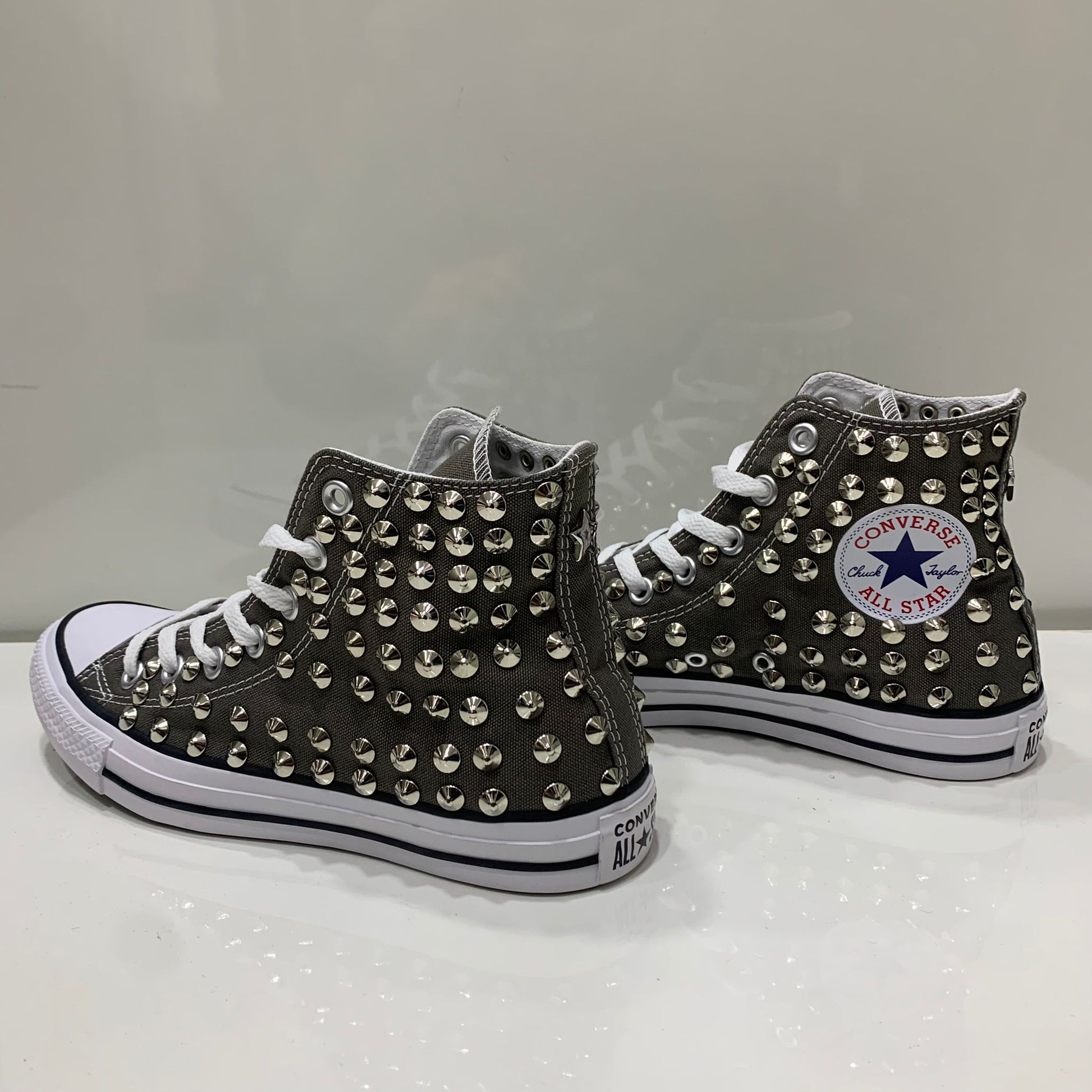 Converse Grigio Scuro Charcol Alte all star con Borchie Argento Stella No Logo