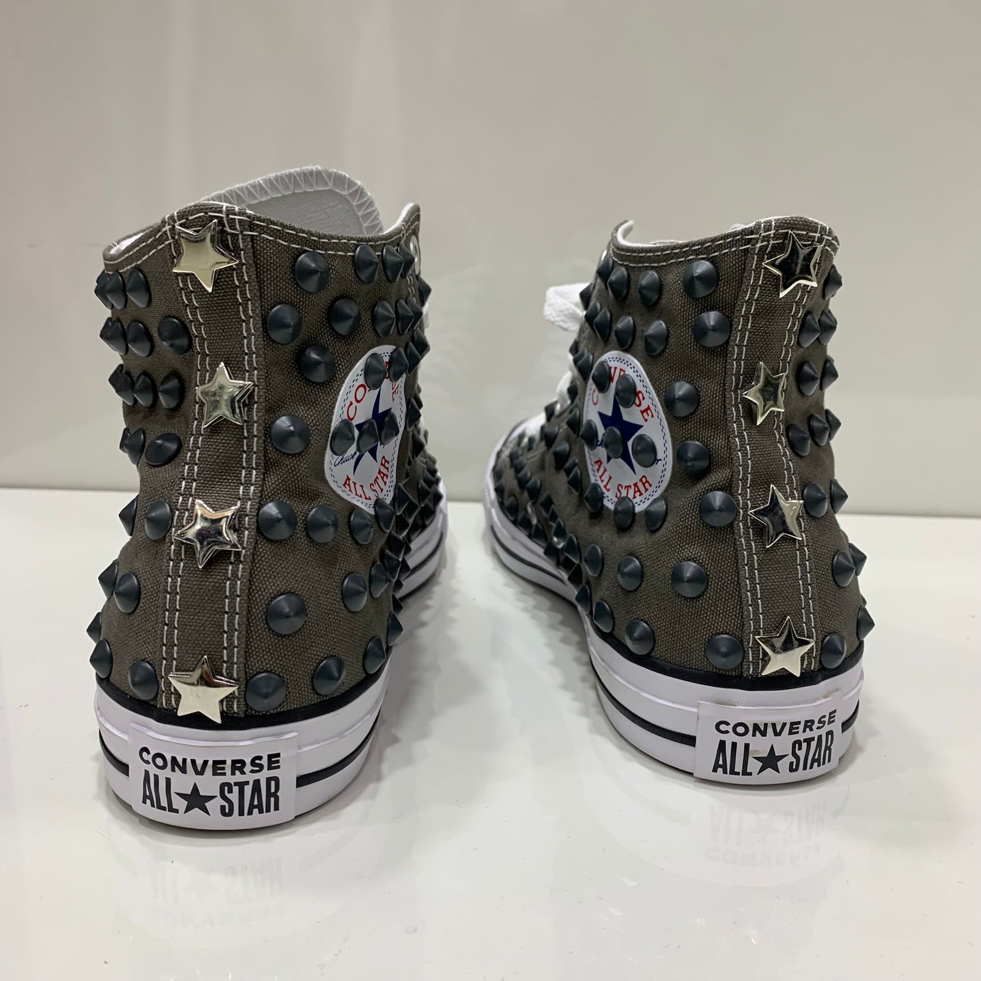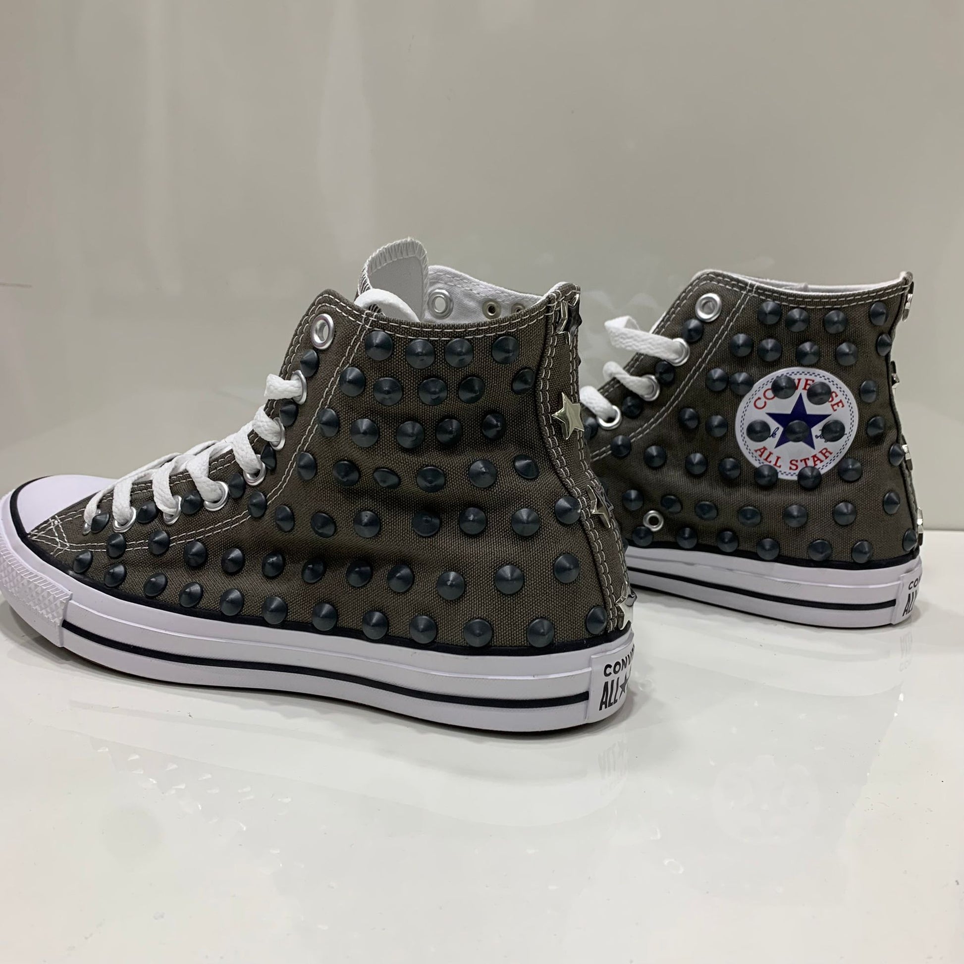 Converse Grigio Scuro Charcol Alte all star con Borchie Grigie in Ceramica Stelle